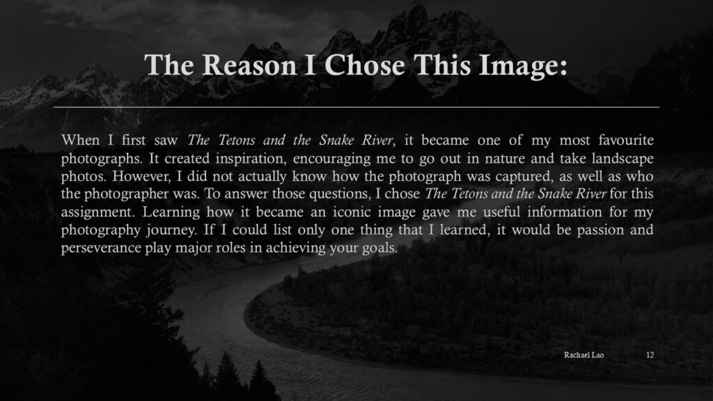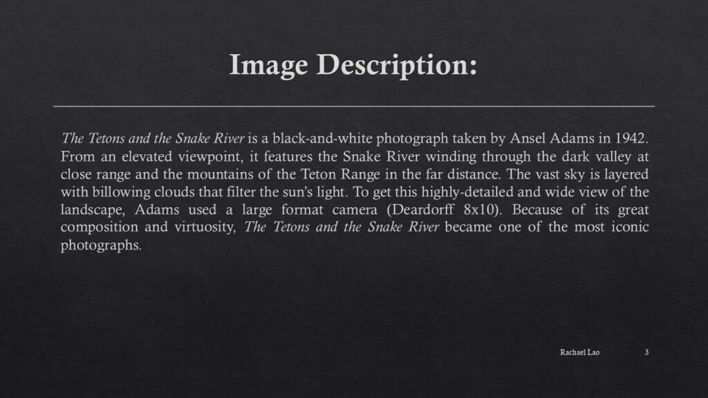 – The Tetons and the Snake River – Ansel Adams (Slide 5)
