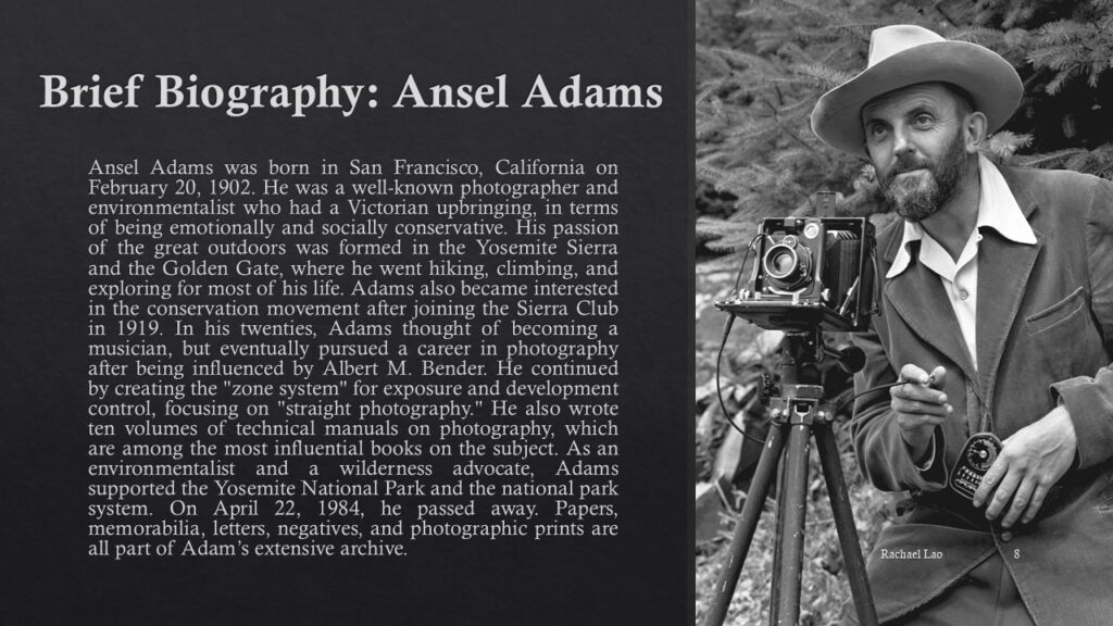 – Ansel Adams Biography – A Photographer & Environmentalist (Slide 8)