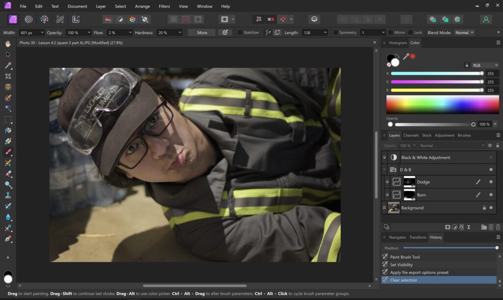 Photography 30 (4.2 #3) November 20, 2025 by Rachael Lao Dodge and Burn Skin Tones and ClothingEditing Software: Affinity Photo 2Photo by Rachael Lao Original Edited