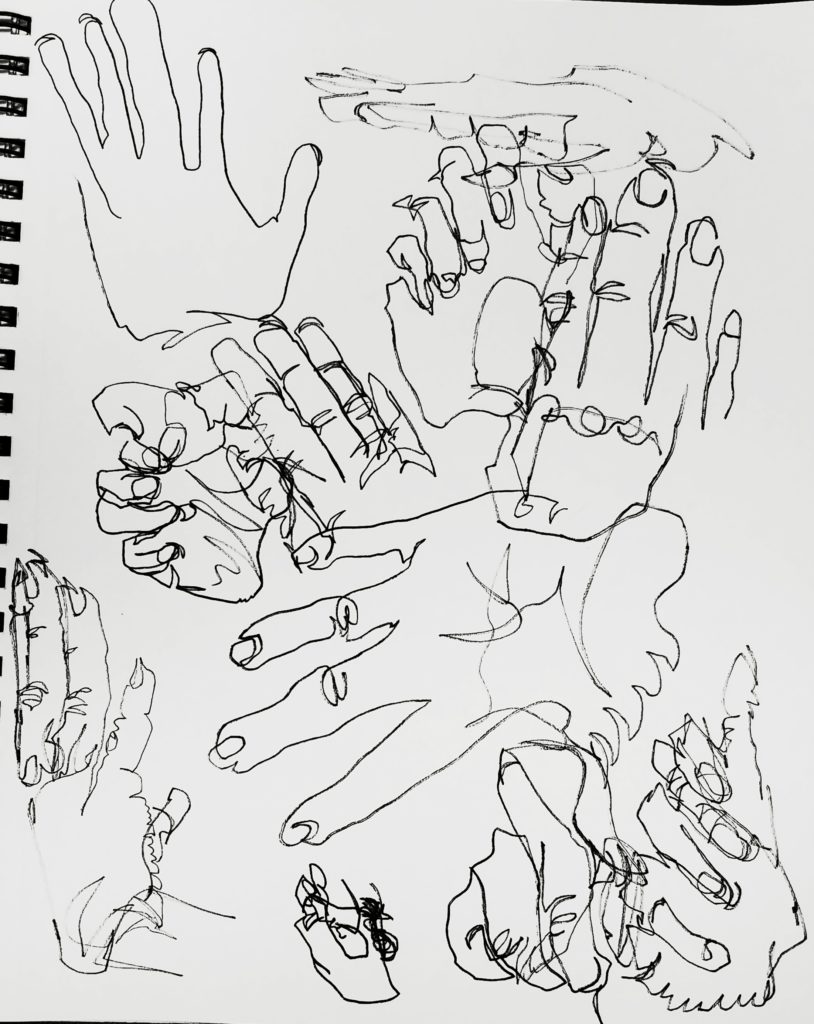 These are blind contour drawings of my right hand. The one in the top-left corner was the first drawing that I did. I thought it was difficult at first, but as I kept on practicing, I became more confident and better at it.