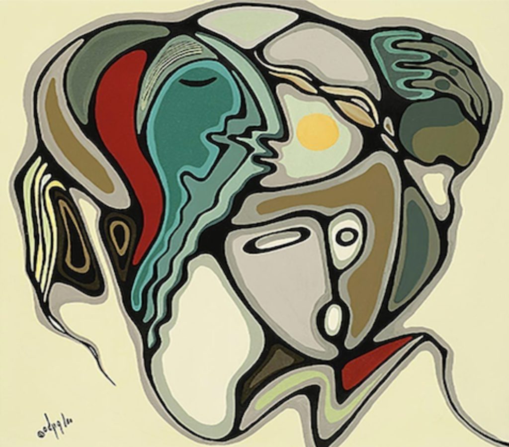 “To Drop the Mask” is a painting done by Daphne Odjig. In the middle of the painting, it shows abstract faces that attracted most of my attention. The mask (the white shape at the bottom) can be seen by looking at the outline of the main subject. I think the outline looks like the side profile of a woman’s head. I also think Odjig used the symbol of a mask to represent defiance by resisting barriers and freely expressing one’s thoughts. In conclusion, the elements of art that Odjig used in this painting were calligraphic lines and beautiful colours to lead the viewer’s eye. This painting gets 4 out of 5 stars from me.
