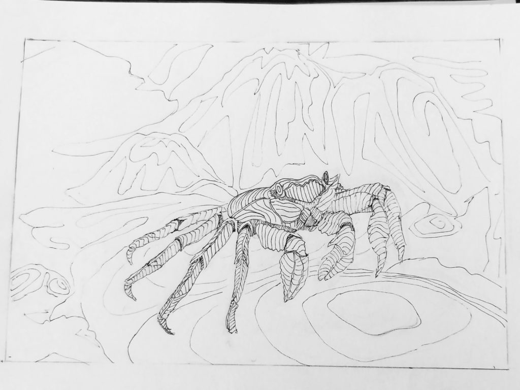 Above is my first contour ink drawing for this lesson. I tried adding some lines and detail to the background, similar to a topographic map. Overall, the drawing was kept simple.