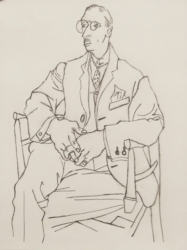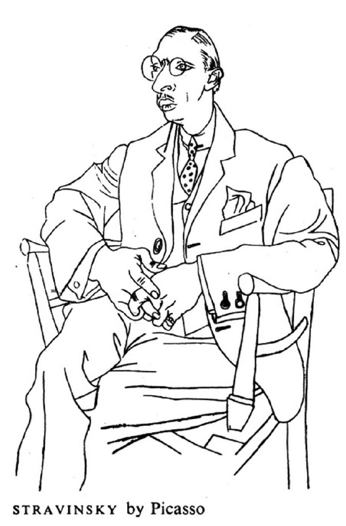 I think this is an exercise that many drawing students do because it allows them to focus on the lines and draw what they see. Students are not distracted or overwhelmed by drawing an image of Stravinsky, but rather focused on the lines and shapes that make up Stravinsky.