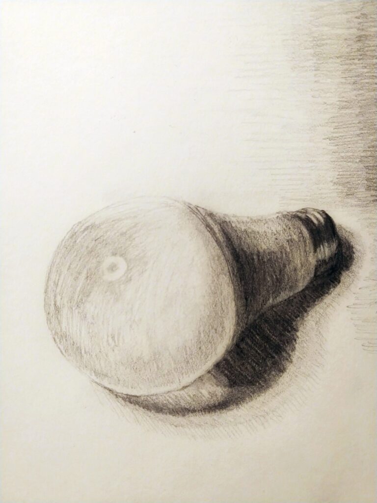 The shading method I used was contour-hatching. I used a 2B pencil for the initial sketch, as well as for the lighter shadows of the object. For the darker shadows, I used a 4B pencil. Then, I used a 6B pencil for the really dark and small details.